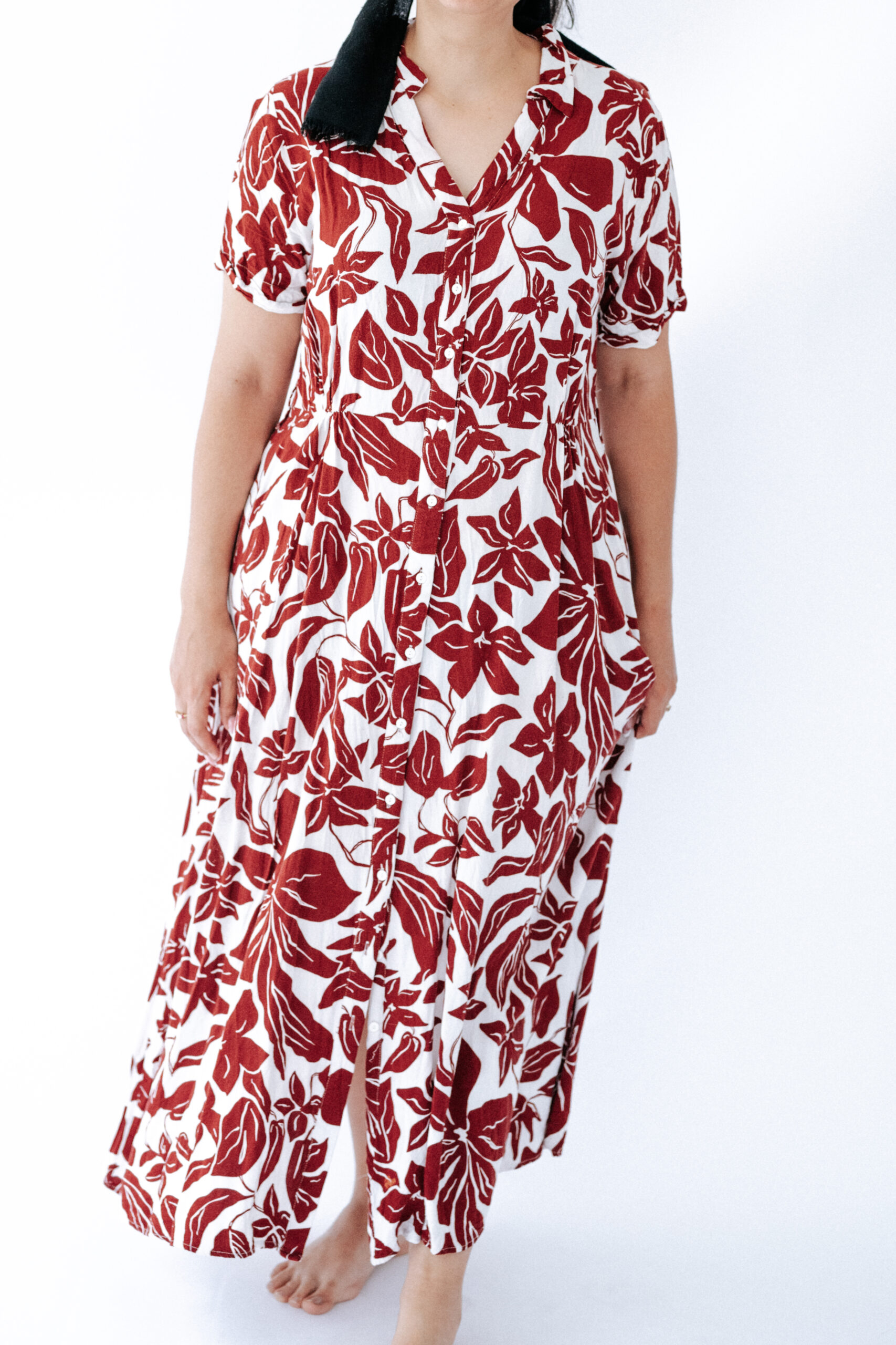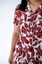 שמלת פרחים ועלים 100% ויסקוזה עם מעט כיווץ במותן מידה רשומה L