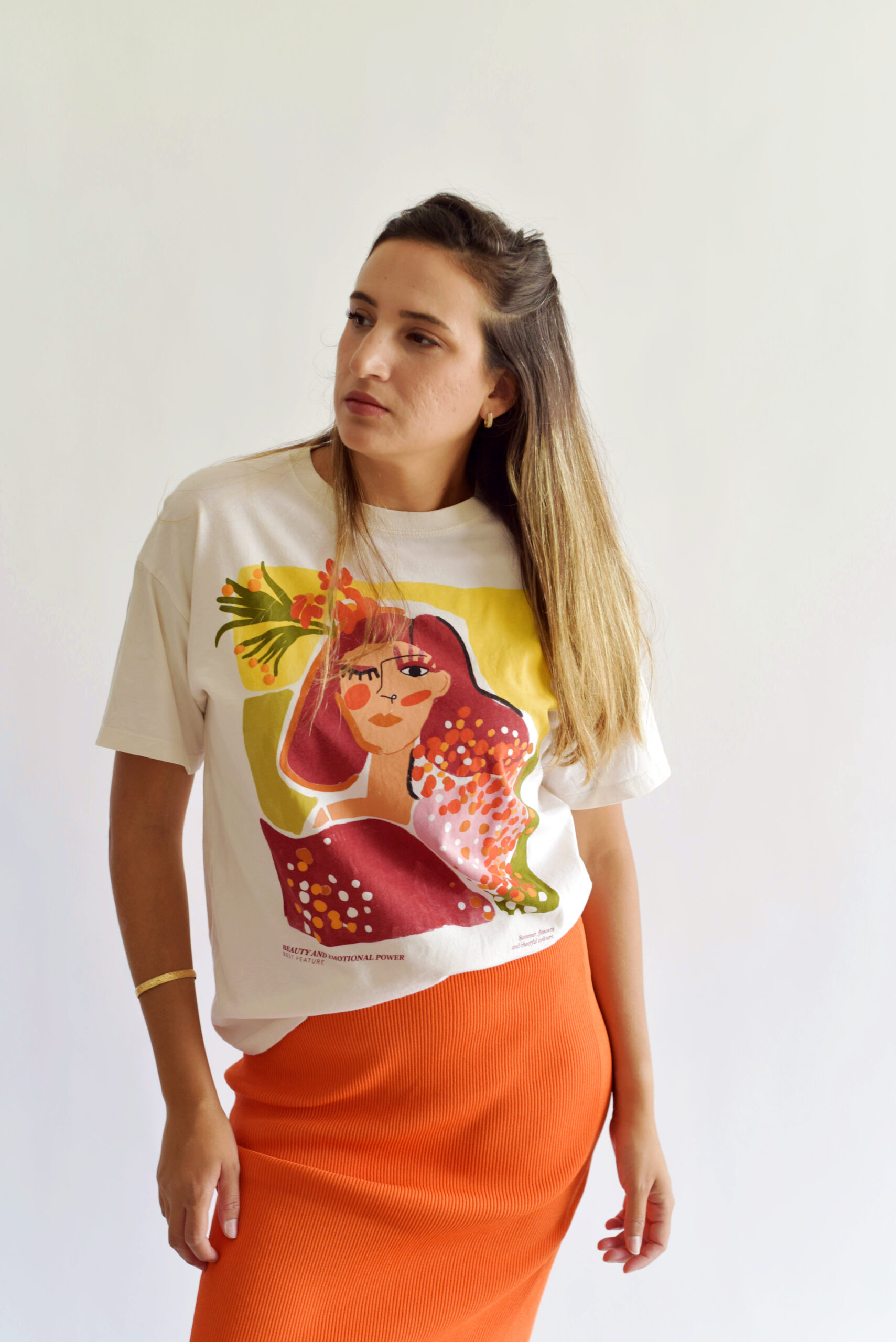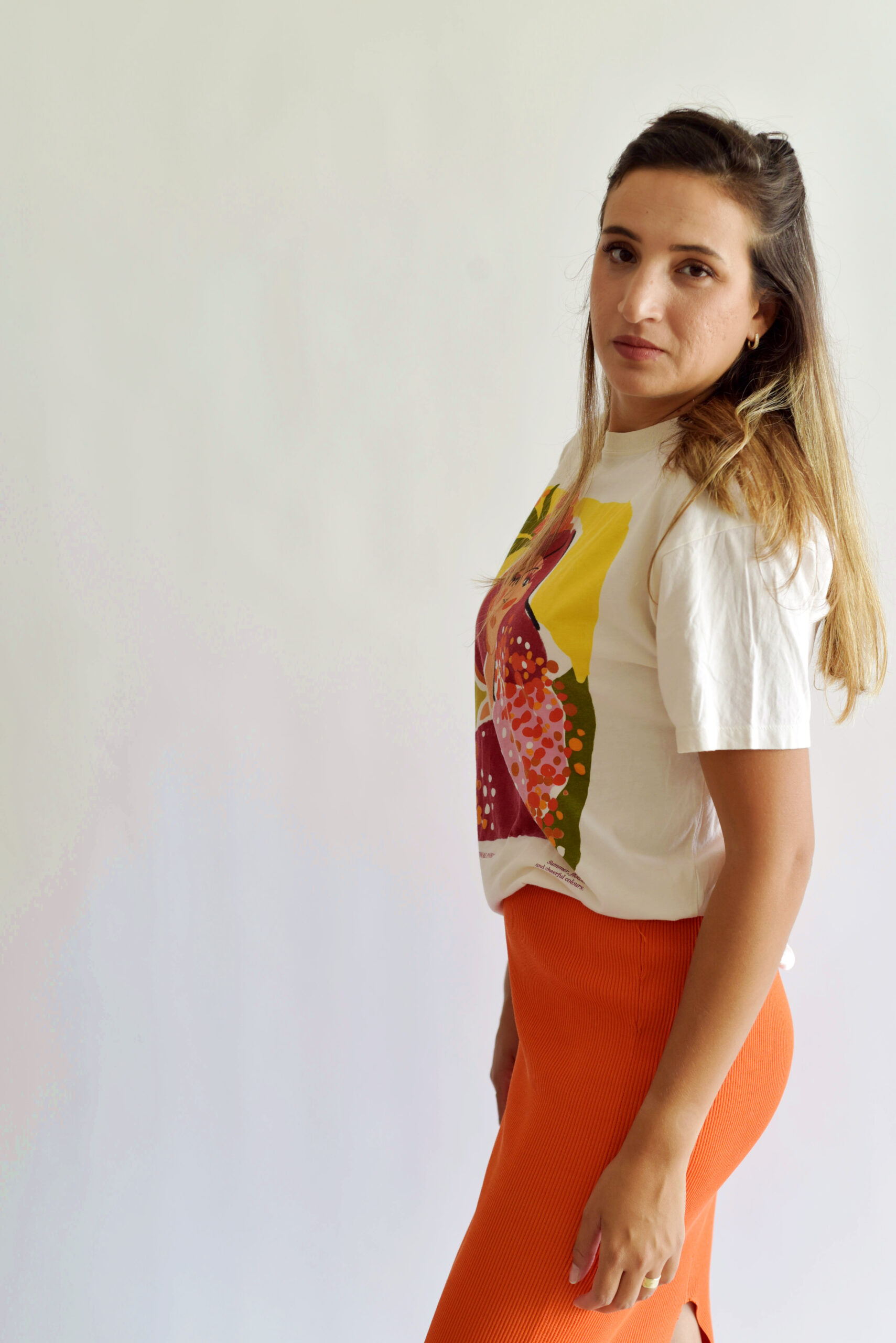 חולצה לבן כתום פול אנד בר XS