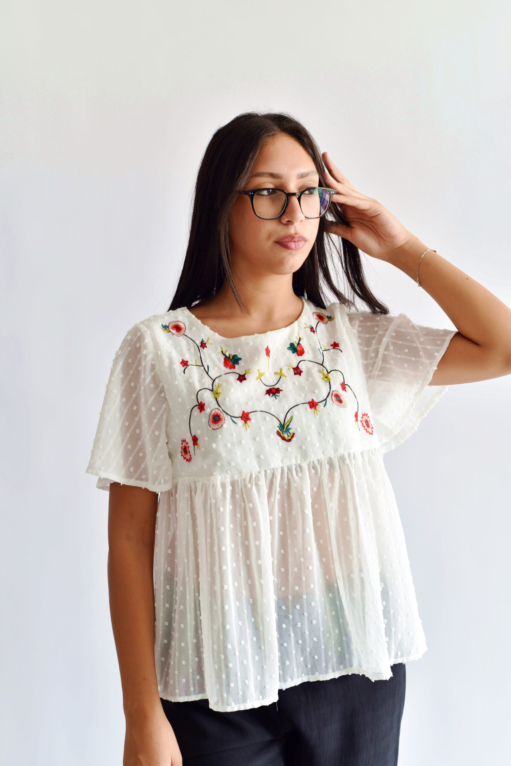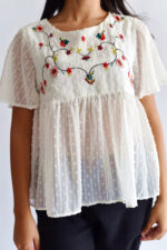 חולצת שיין לבנה עם עיטורים מידה רשומה M