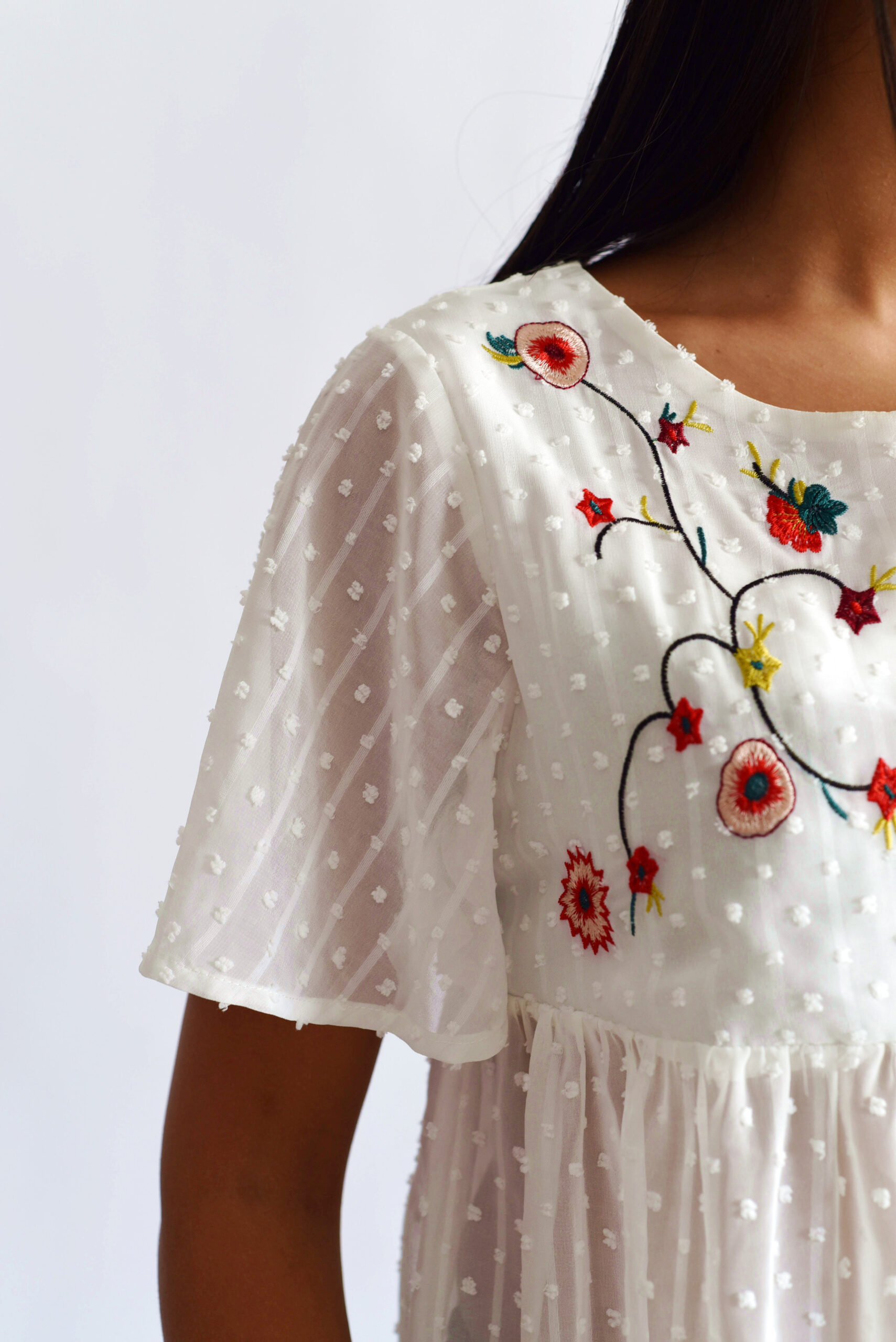 חולצת לבנה עיטורים שיין M