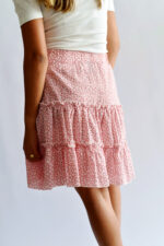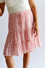 חצאית פרחונית של שיין לבן אדום בורדו מידה רשומה S תתאים גם לM אורך 50 סמ