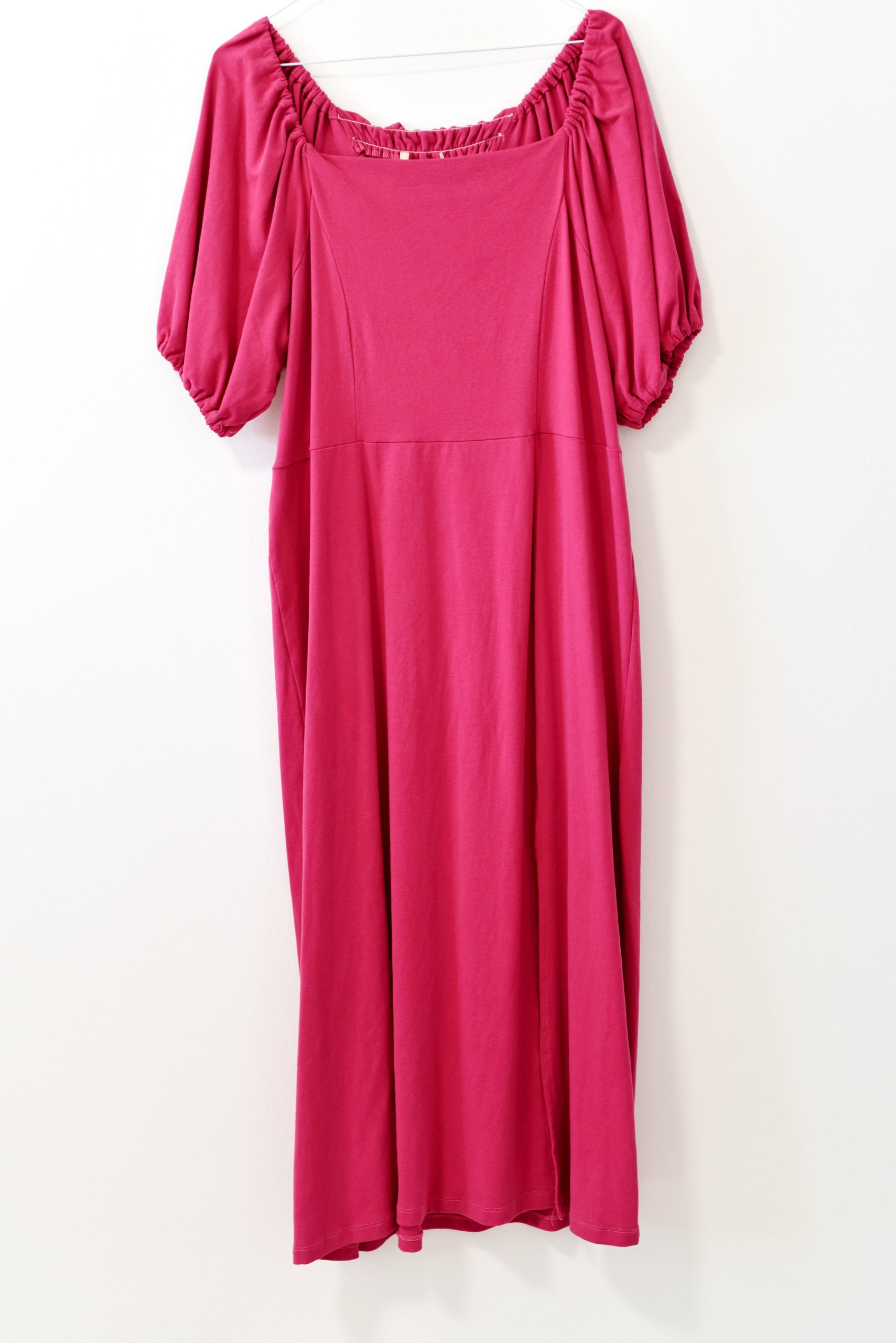 שמלה של הדס מרגישה כותנה אבל לא כתוב, גם מידה לא רשום נראית M/L אורך 120 סמ