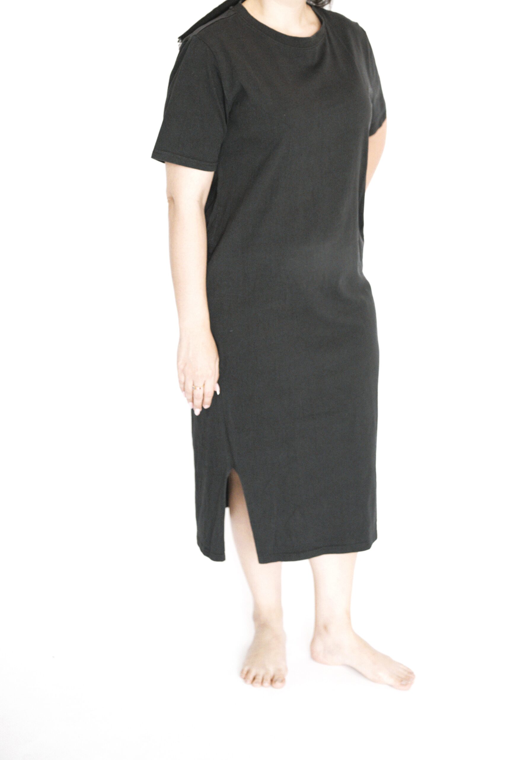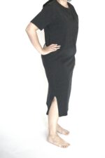 שמלה שחורה של פוקס 100% כותנה עם שרוול קצר ושסע קטן בכל צד