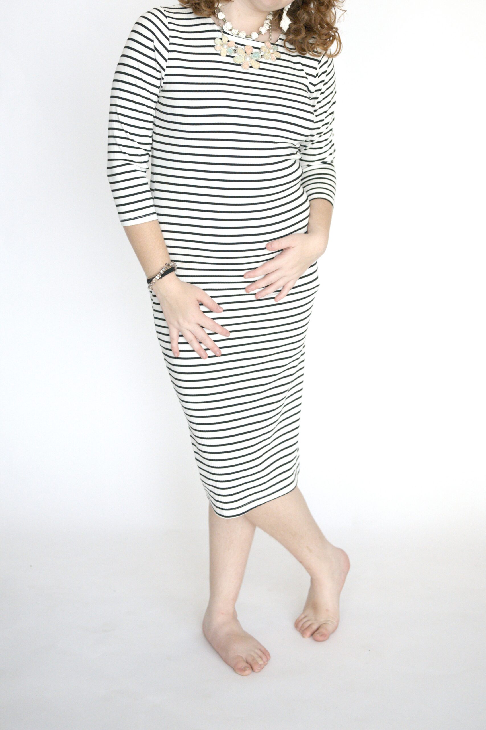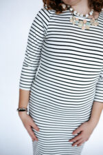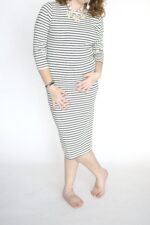 שמלת פסים לבן שחור מבד מעט אלסטי מידה רשומה 4/XL נראה שתתאים גם לL