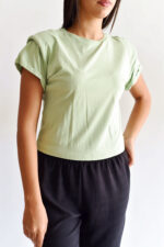 טי שרט בגוון ירקרק 100% כותנה מידה רשומה S תתאים גם לM מגיעה עם ספוגיות דקות בכתפיים וכפל מובנה