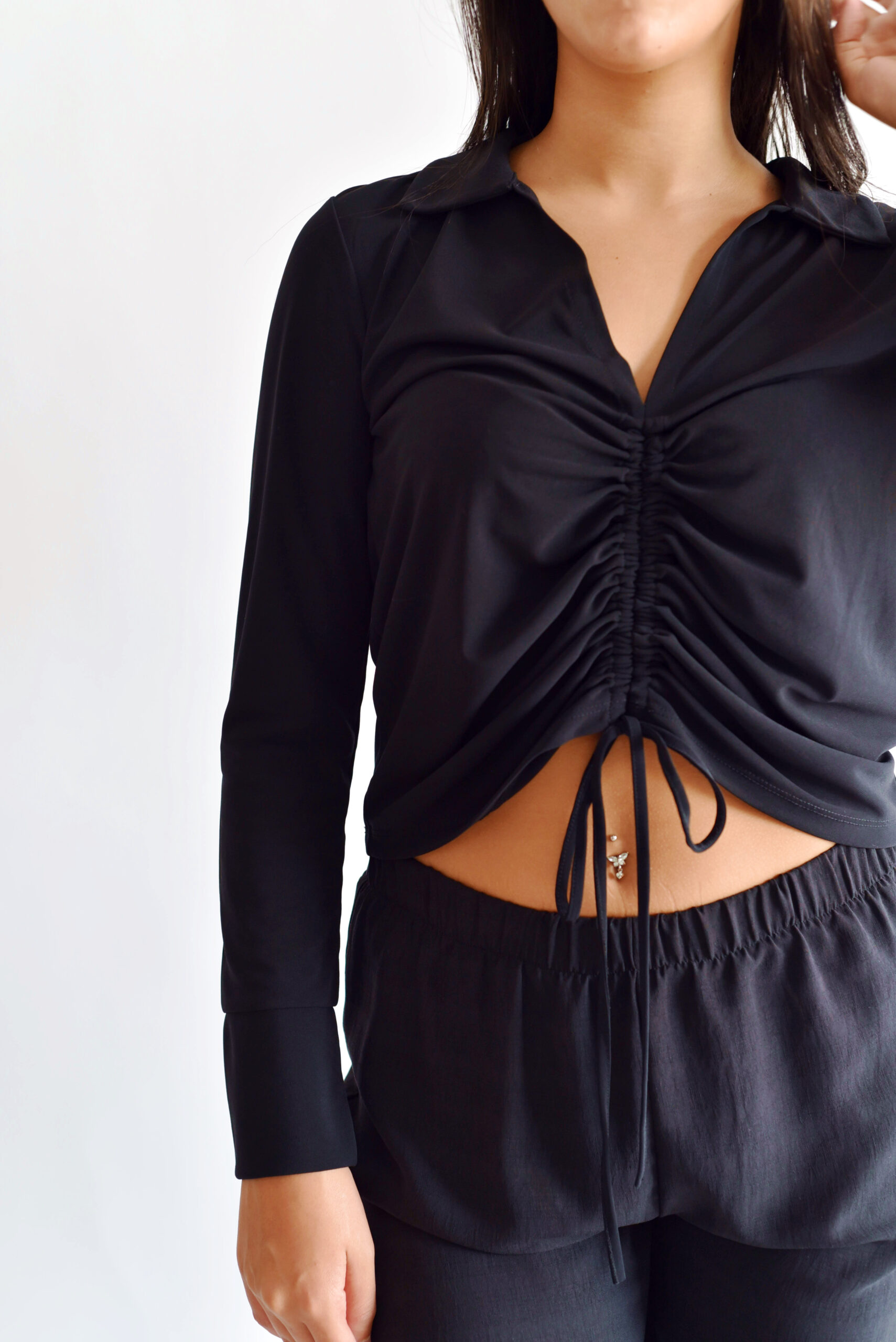 חולצת כיווצים שחורה של זארה מידה רשומה M