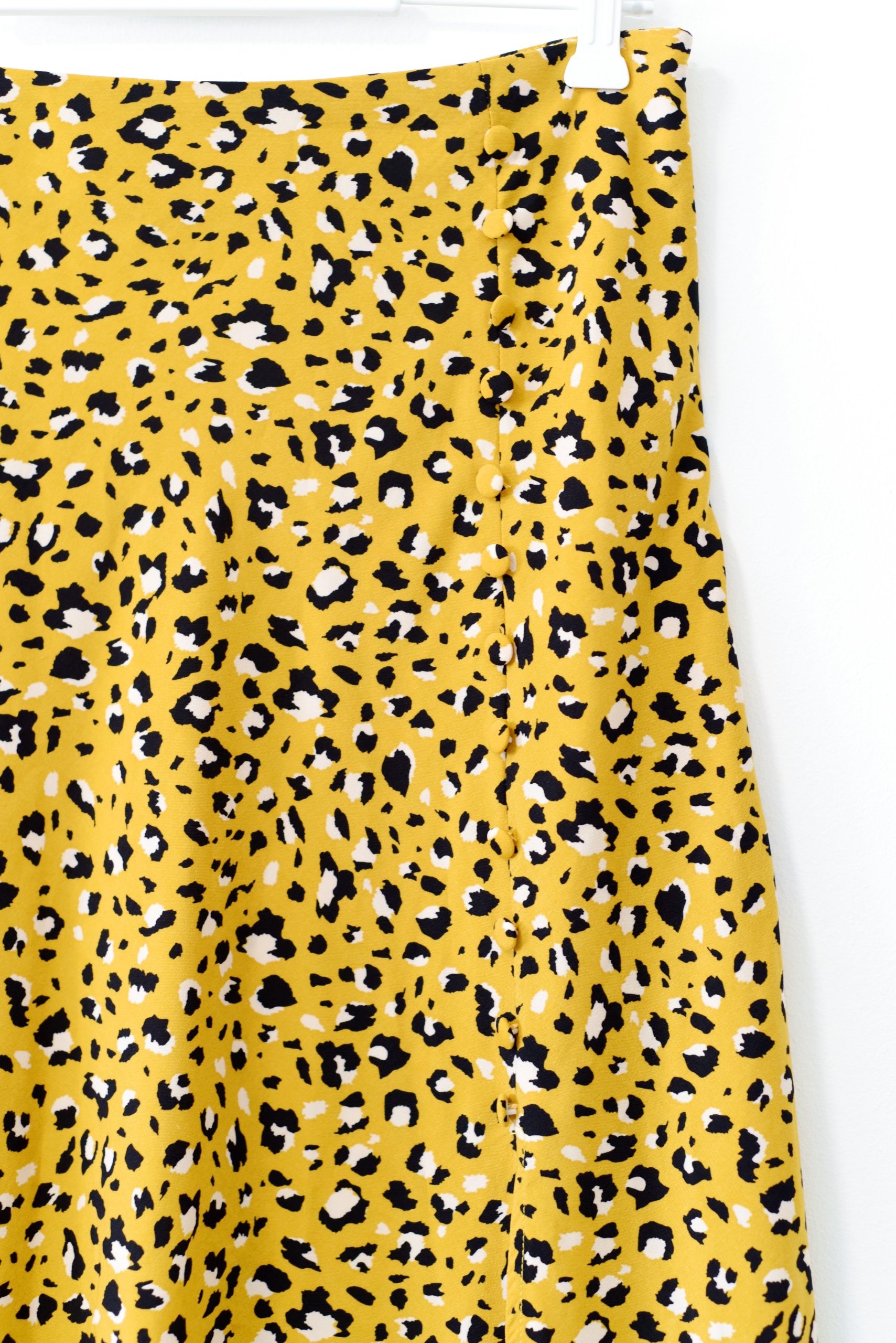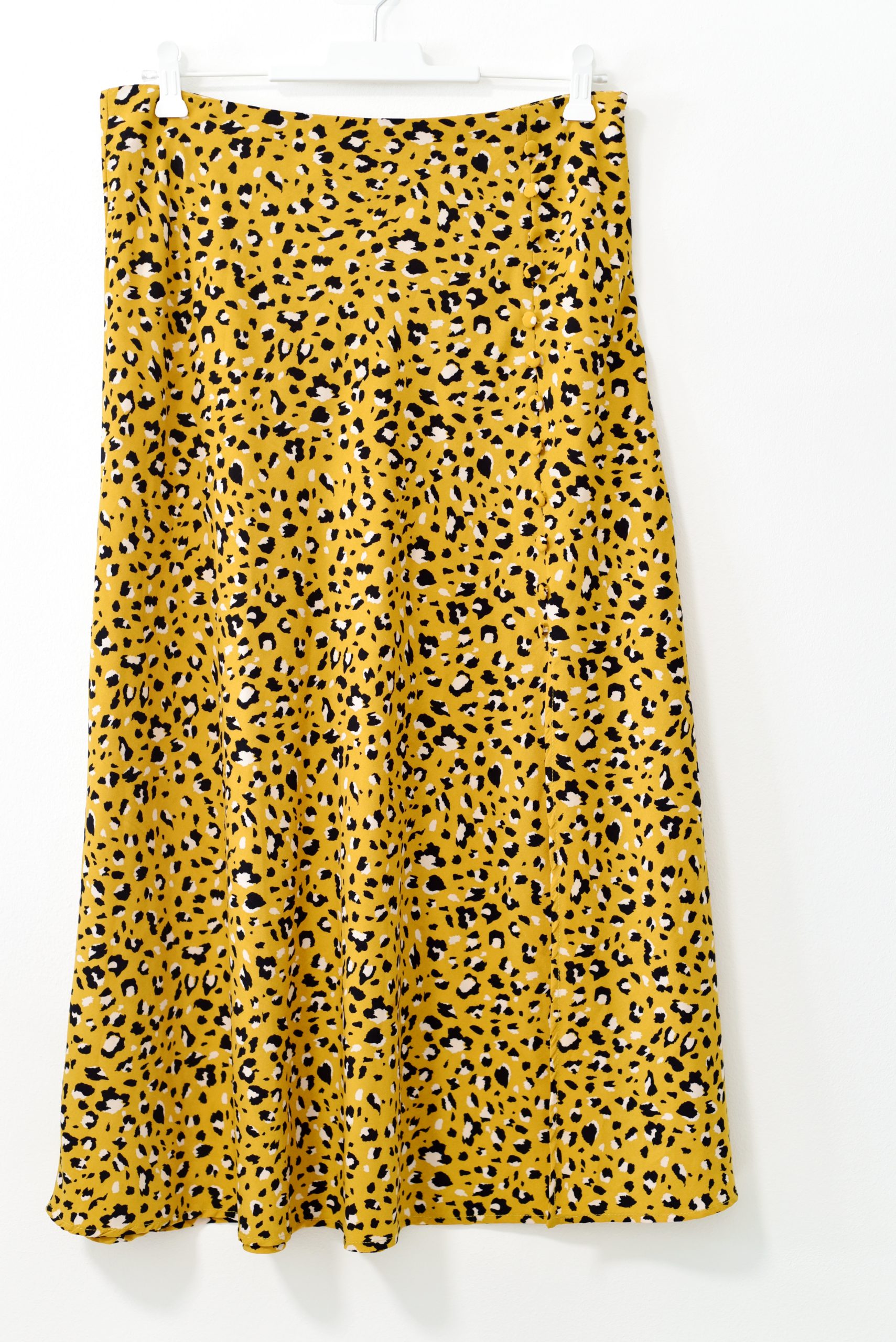 חצאית חרדל מנומרת של בא מאהבה מידה רשומה L אורך 85 סמ