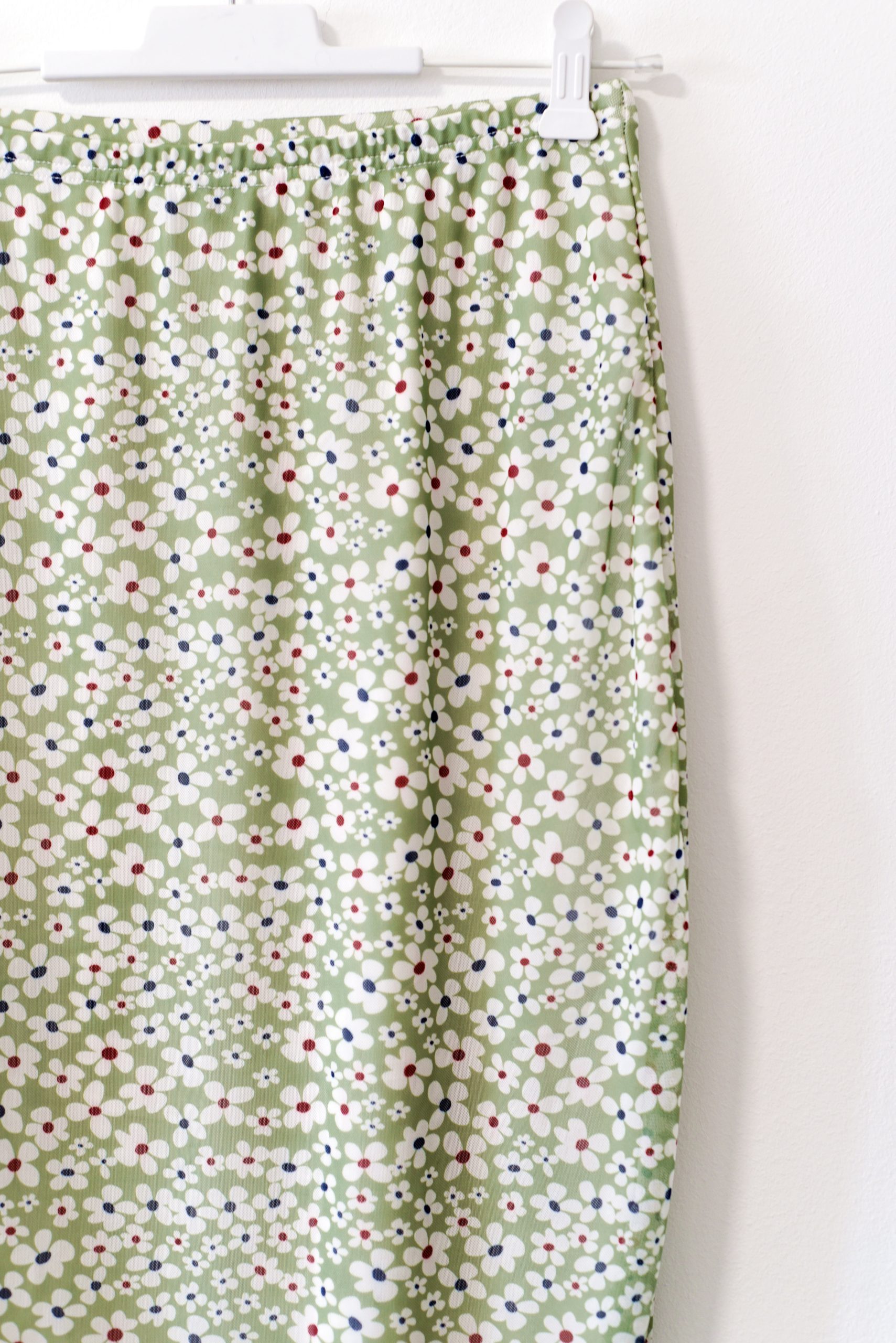 חצאית פרחונית מבד בסגנון רשת עם תחתית מידה רשומה S אורך 80 סמ