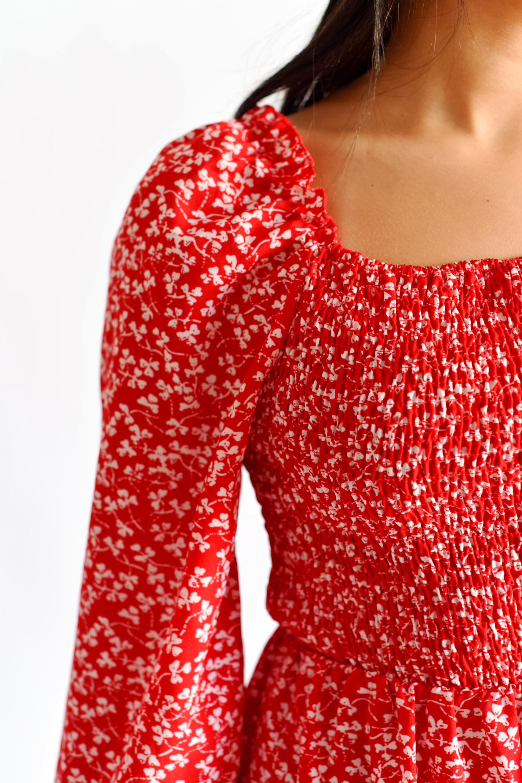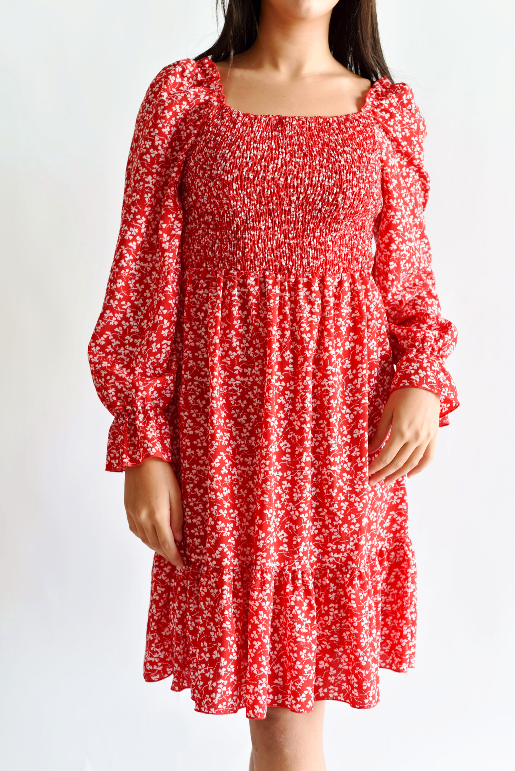 שמלה אדומה פרחונית שרוול ארוך 38