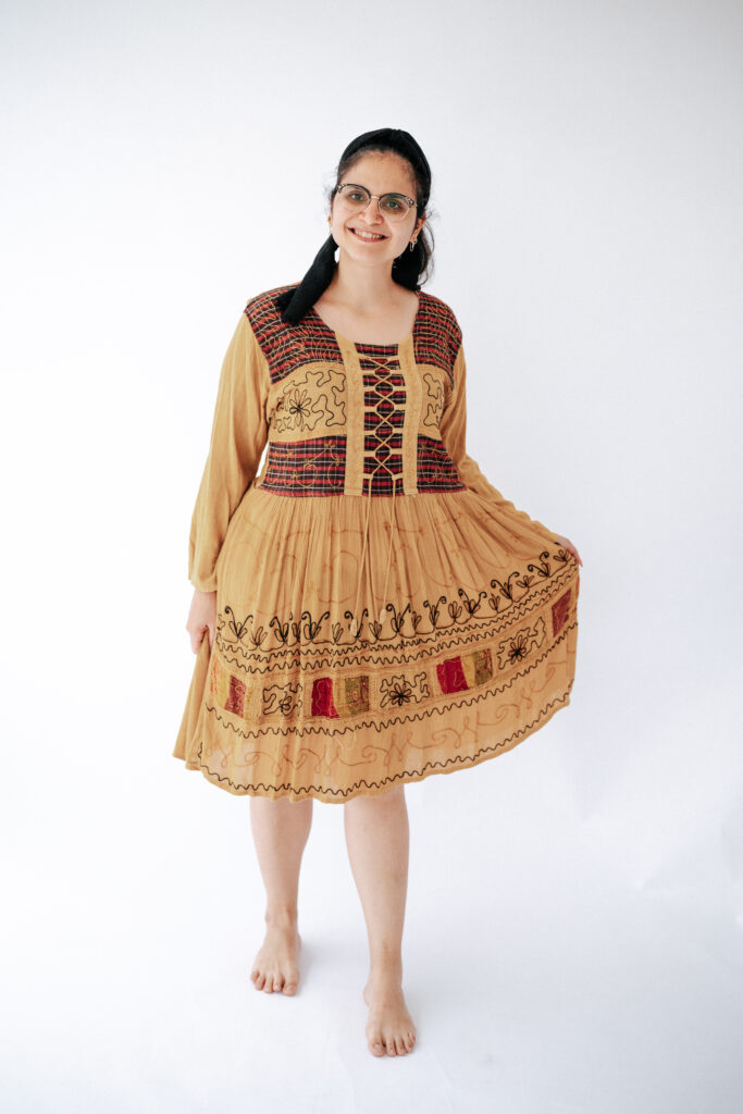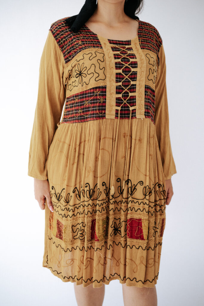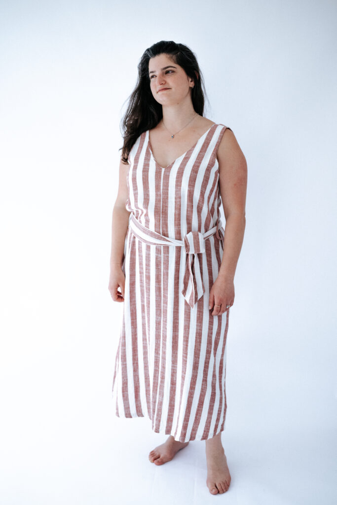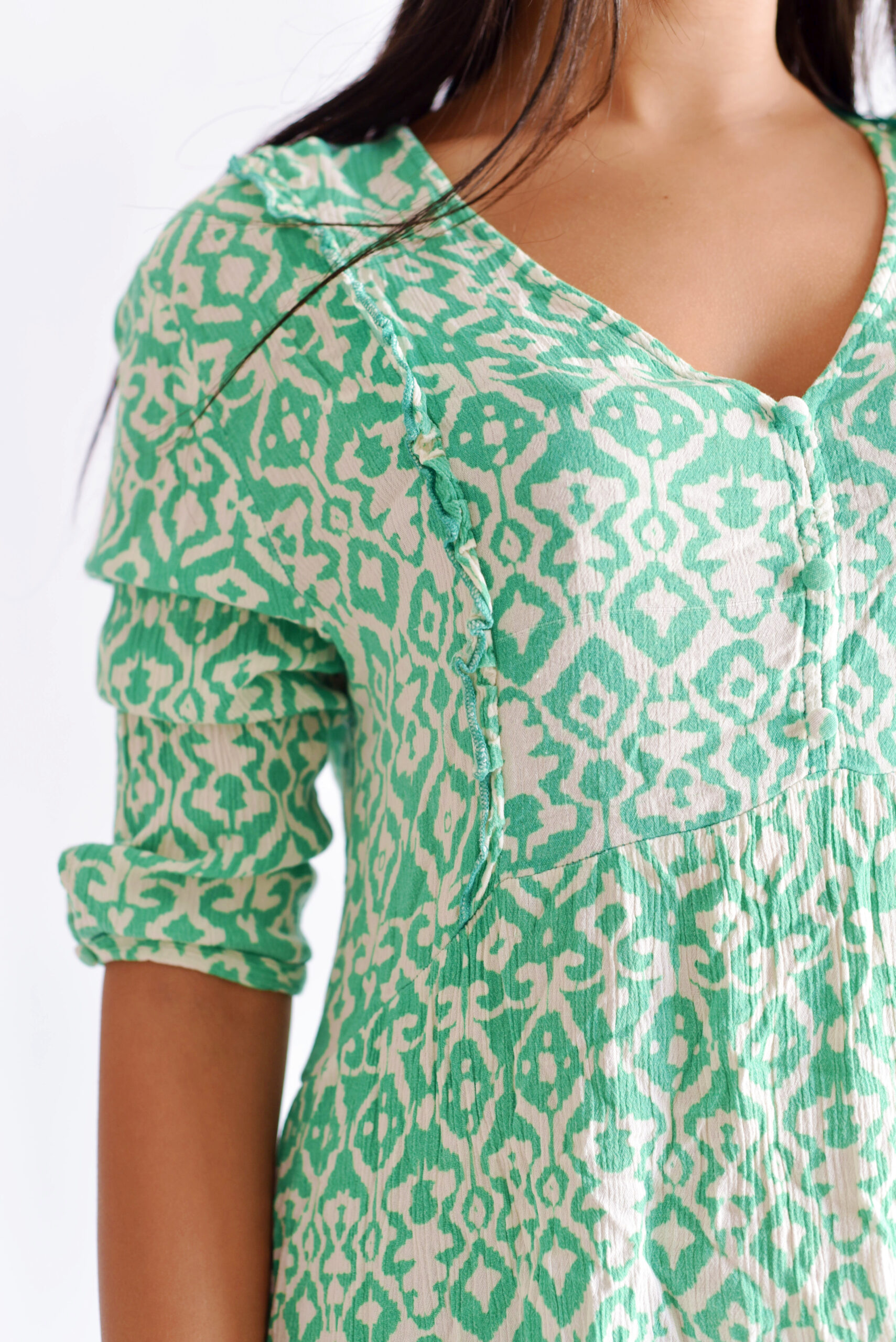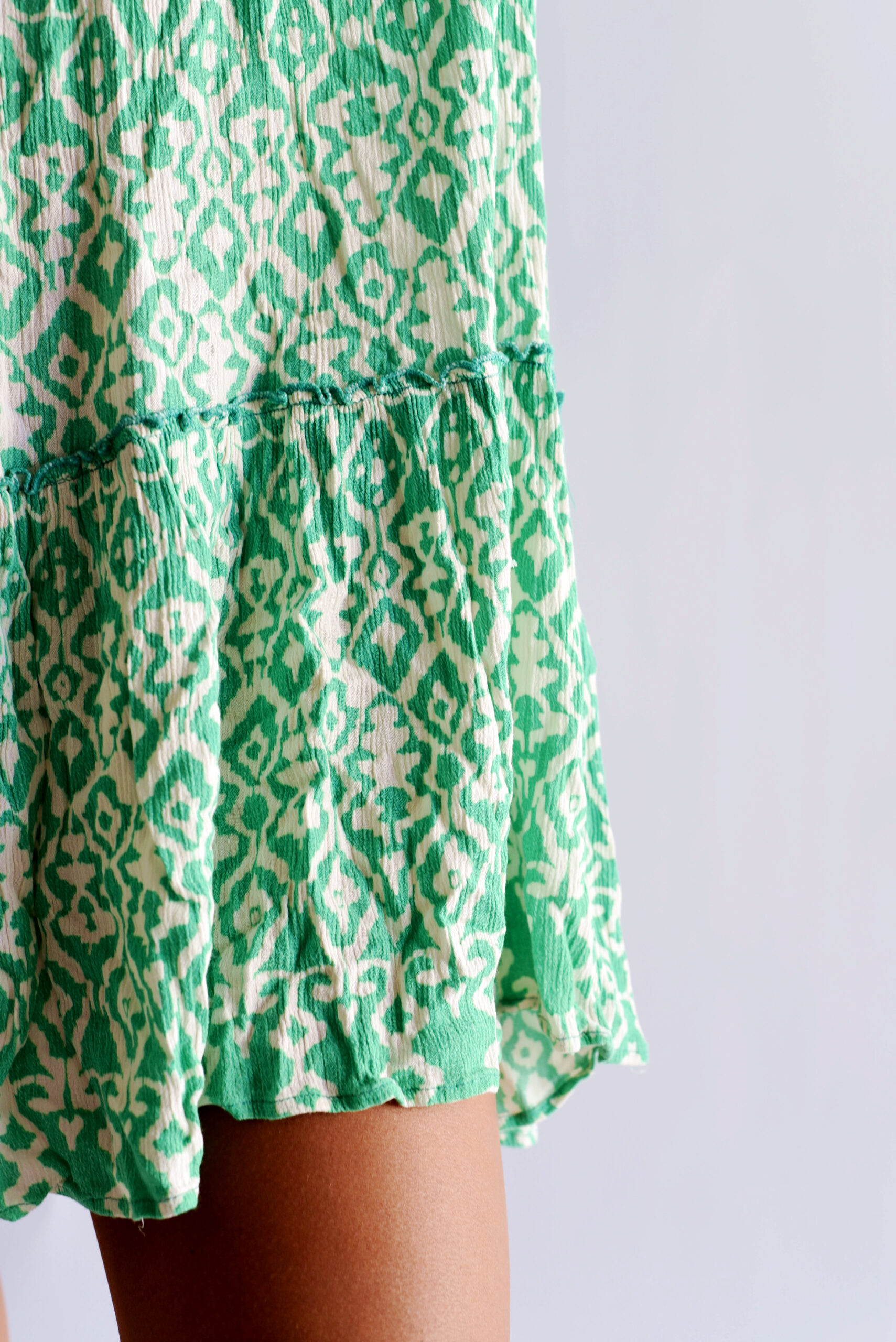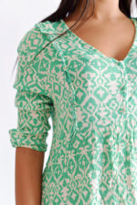 שמלה ירוק לבן של רנואר מידה 38 אורך 80 סמ