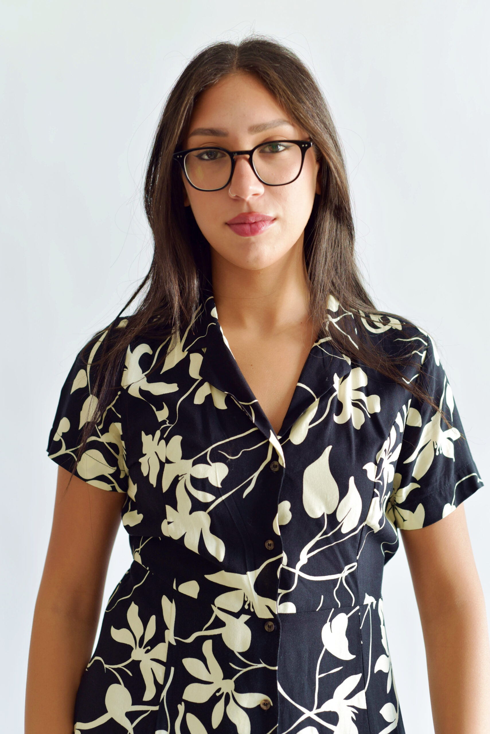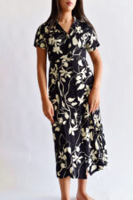 שמלת פרחים שחור לבן של תמנון מידה רשומה S תתאים גם לM אורך 115 סמ