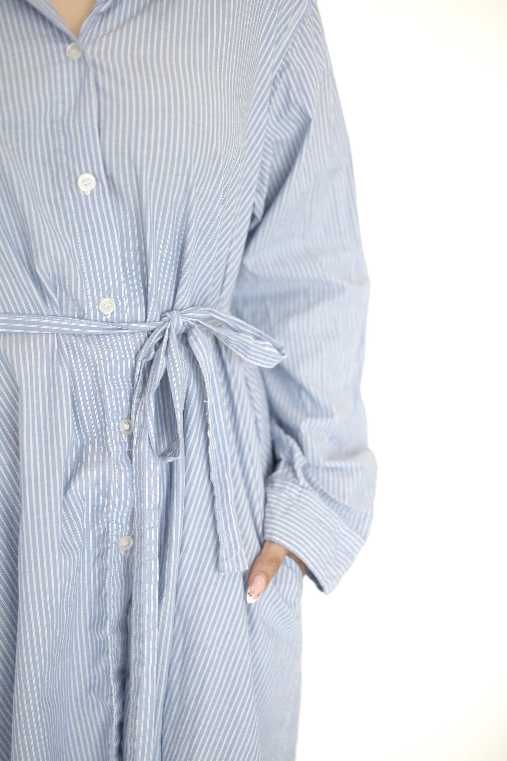 שמלת פסים עדינה של זיפ 100% כותנה מידה רשומה 44 תתאים גם לפחות כי אפשר לשחק עם הקשירה או ללבוש כאוברסייז
