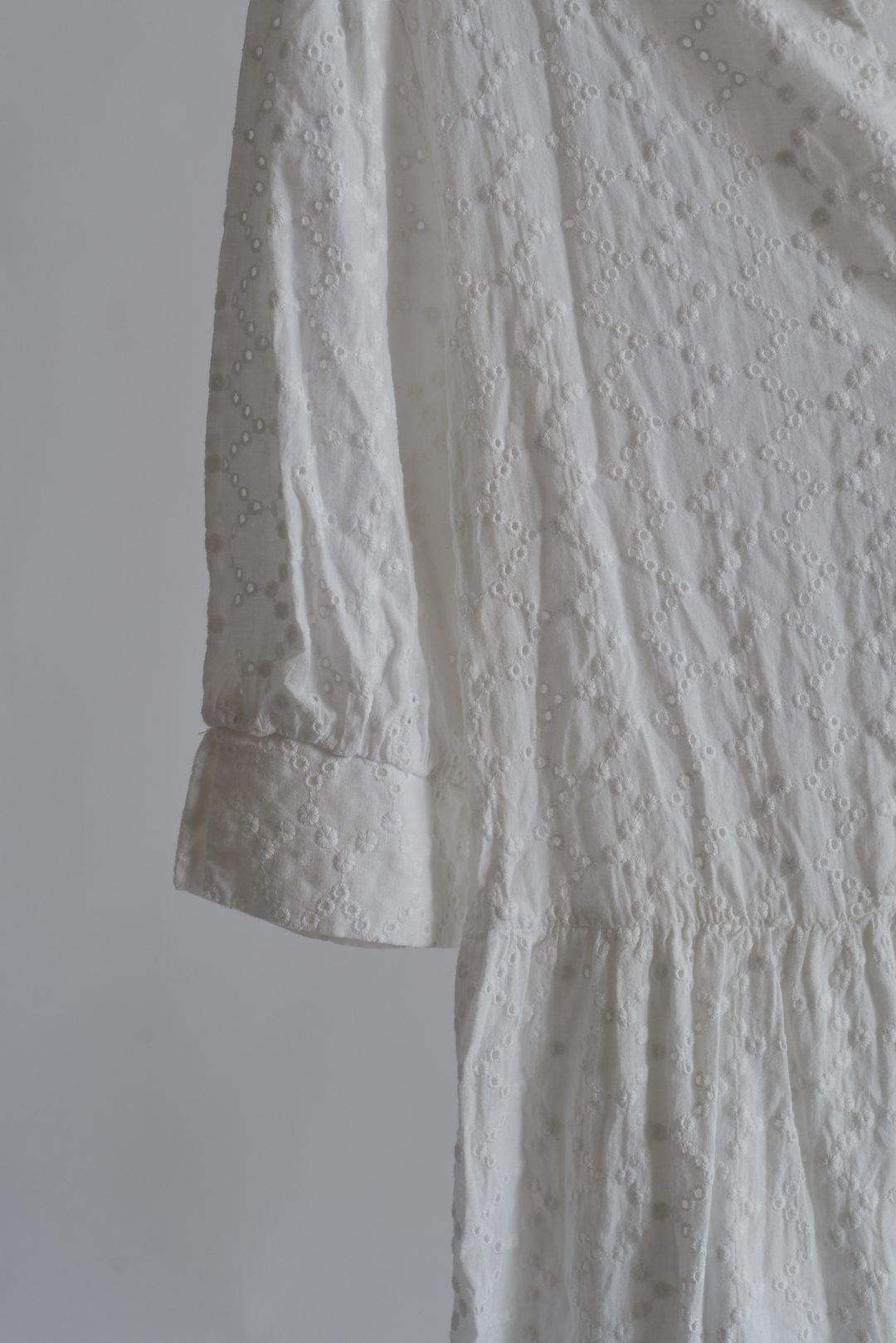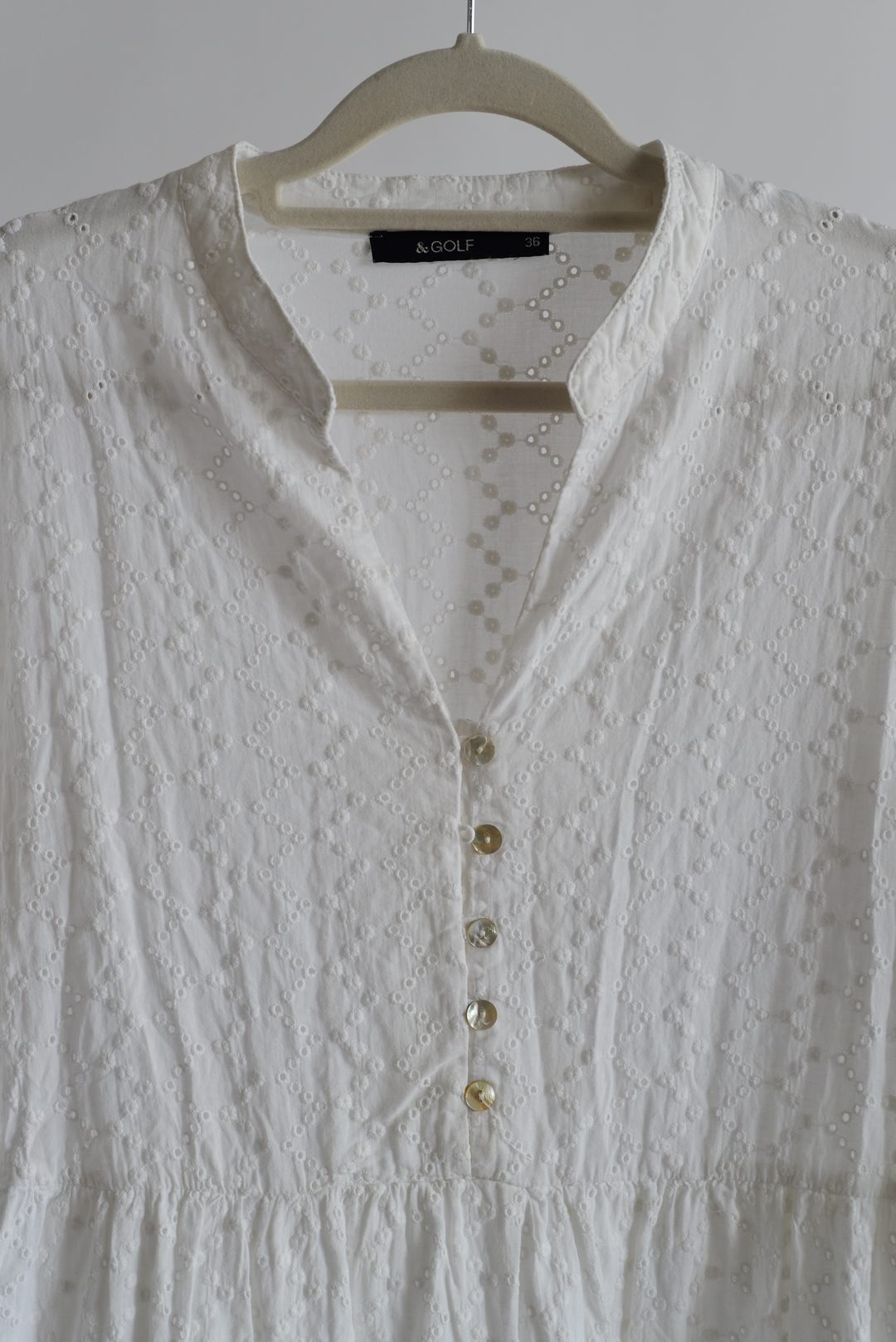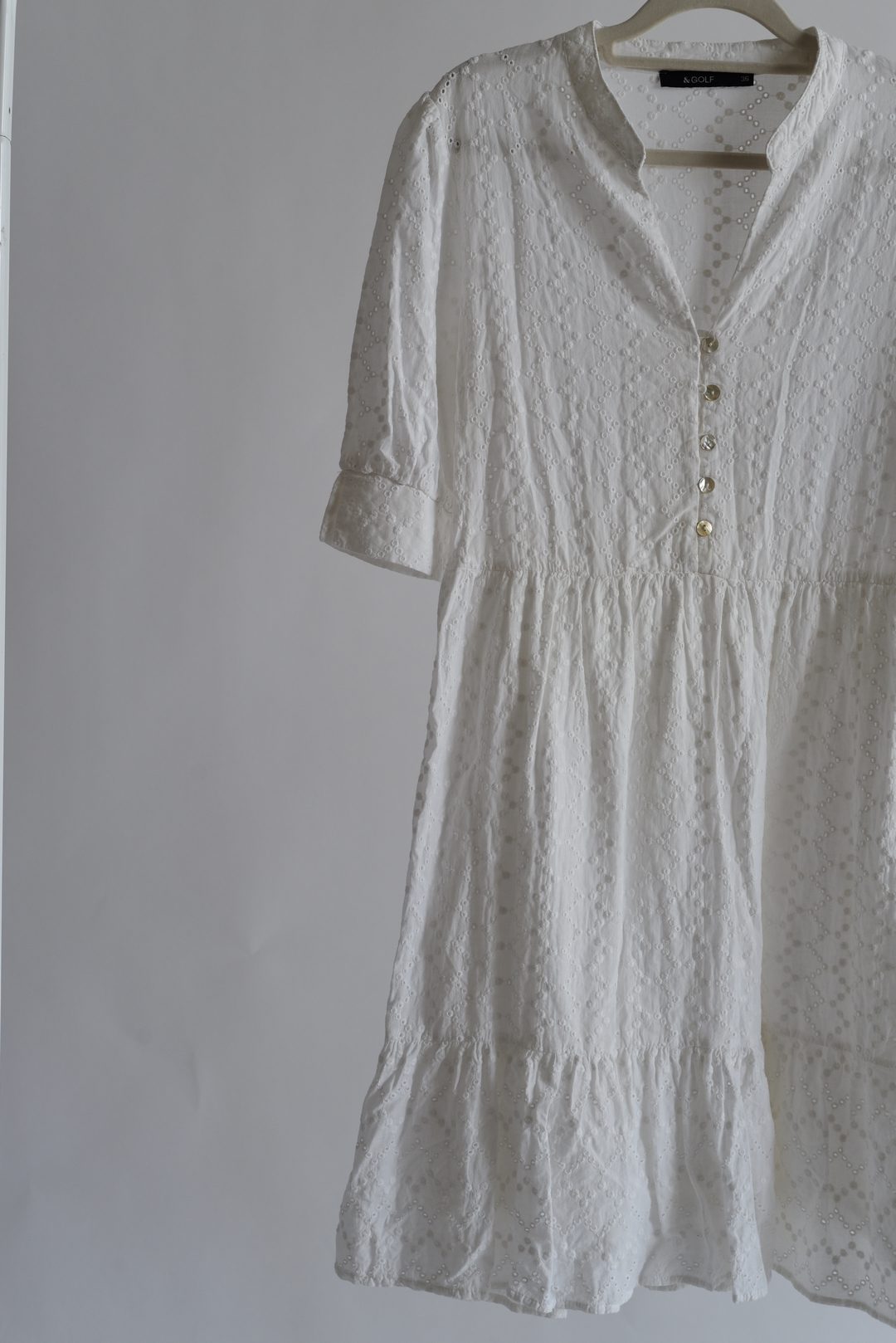 שמלה לבנה של גולף עם פרחים בסגנון רקום מידה S אורך 89